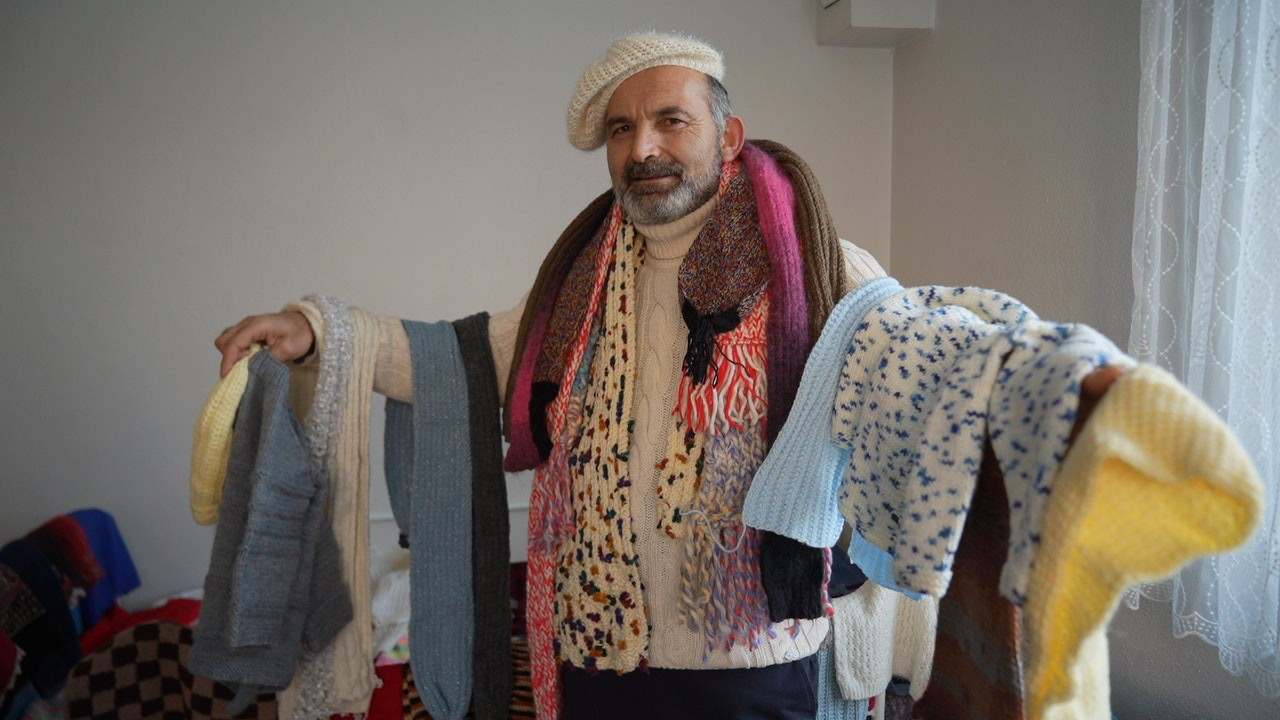 1999 depreminde evinin yıkıldığını anlatan İsmail Ak, “Deprem olduktan sonra üzerimizde hiçbir elbisemiz yoktu. O zamanlar hayırseverler elbise bırakmıştı. Zaten çok duygusal bir milletiz. ‘Biz neden hayırsever olmayalım?’ dedik ve bir grup kurduk. O günden bu güne grubumuzdaki kadınlar örmeye devam ediyor” dedi.
