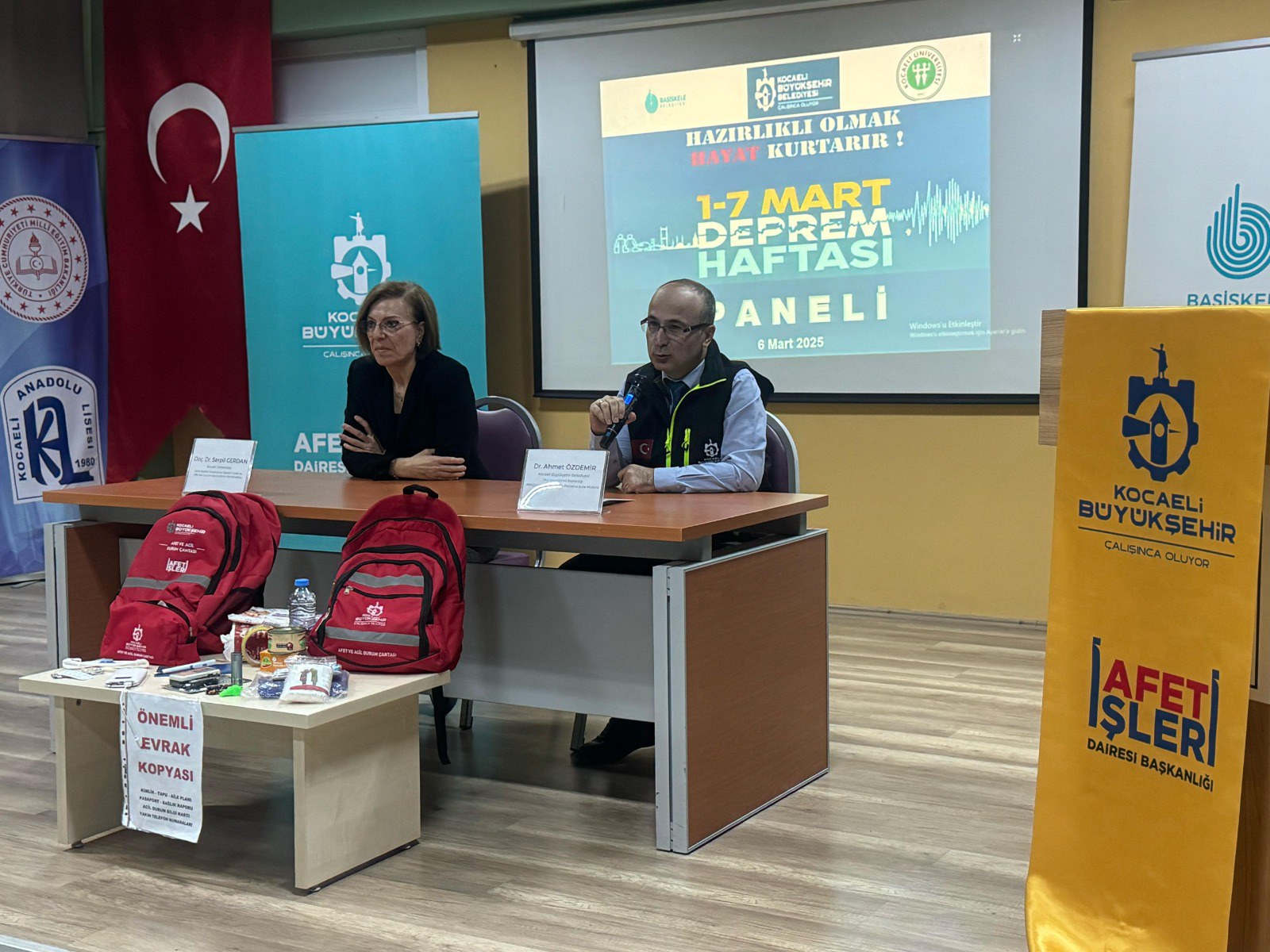 “Bireysel Afet Farkındalığı”, “Afetlere Karşı Toplumsal Direnç”, “Aile Afet Planları”, “Türkiye Afet Yönetim Sistemi ve Belediyelerin Afet Yönetimindeki Rolü” panellerinde öğrencilerden gelen sorular alanında uzman akademisyenler tarafından cevaplandırıldı. Düzenlenen panellere 2 bin öğrenci ve 146 öğretmen katıldı. Ayrıca Büyükşehir ekipleri tarafından Mehmet Akif Ersoy Kız Anadolu İmam Hatip Lisesi ve Kocaeli Anadolu Lisesi’nde öğretmenlere ve öğrencilere deprem tahliye eğitimleri verildi. Okulların deprem tahliye planları gözden geçirilerek iyileştirmeler yapıldı ve kapsamlı deprem tahliye tatbikatları gerçekleştirildi.