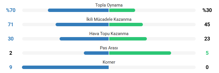 Ezici istatistik: %70 topa sahip olma