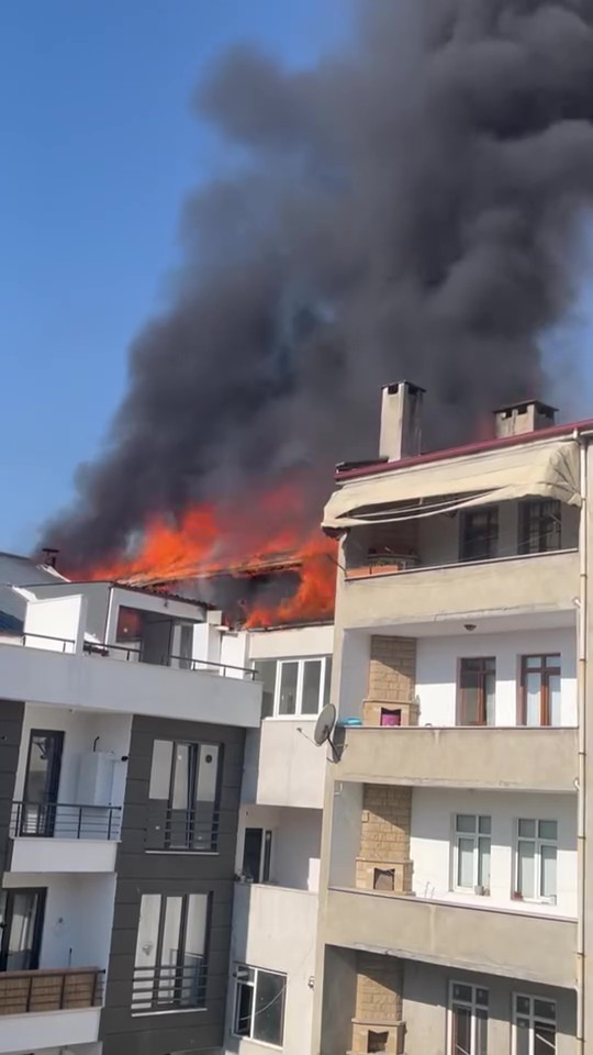 Yangın, Doğan Mahallesi İsmail Özen Caddesi’nde 4 katlı binanın çatı katında meydana geldi. Henüz bilinmeyen nedenle başlayan yangın, kısa sürede büyüdü. Alevler tüm çatı katını sararken, dumanlar ise binayı esir aldı.