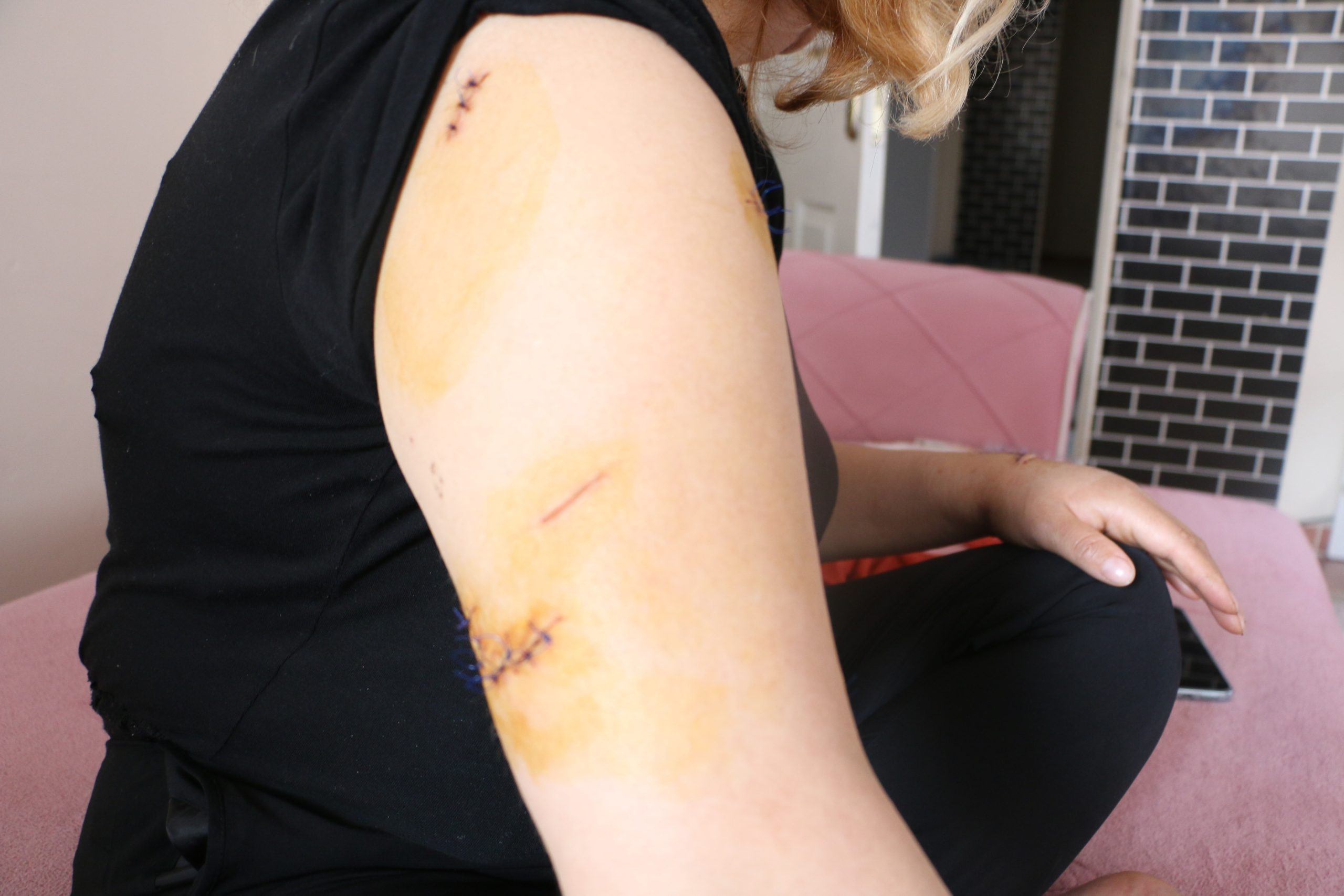 Aldım içeri, dedim gideyim alayım içeriye gelsin eve. Gittim, baktım arabanın kapısını açtım, baktım yok. İçeri girdim. İçeri binanın kapısına girer girmez, arkadan bir baktım o. Dış kapıyı kapattı ve defalarca kez sırtımdan bıçakladı. Artık yere yığıldım. Yere yığıldıktan sonra ve hala durmadı. Akciğerime, kalbime, beynime milimler kala akciğerim söndü. Tromboli geçirdim sonunum yetersizliğinden. Ölüm tehlikesi atlattım. 3 gün boyunca hastanede tedavi altına alındım. Ondan sonra geldim. Gereken ilgili makamlara her yere başvurdum. Devletime güveniyorum. Gereğini de yapacağına eminim. Çocuklarım onun yanına cezaevine gitmişlerdi. Çocuklarıma demiş “Keşke öldürseydim, sizin sesinizi duymasaydım öldürecektim”. Çocuklarım eve geldi. Anne, baba bunu diyor dedi.