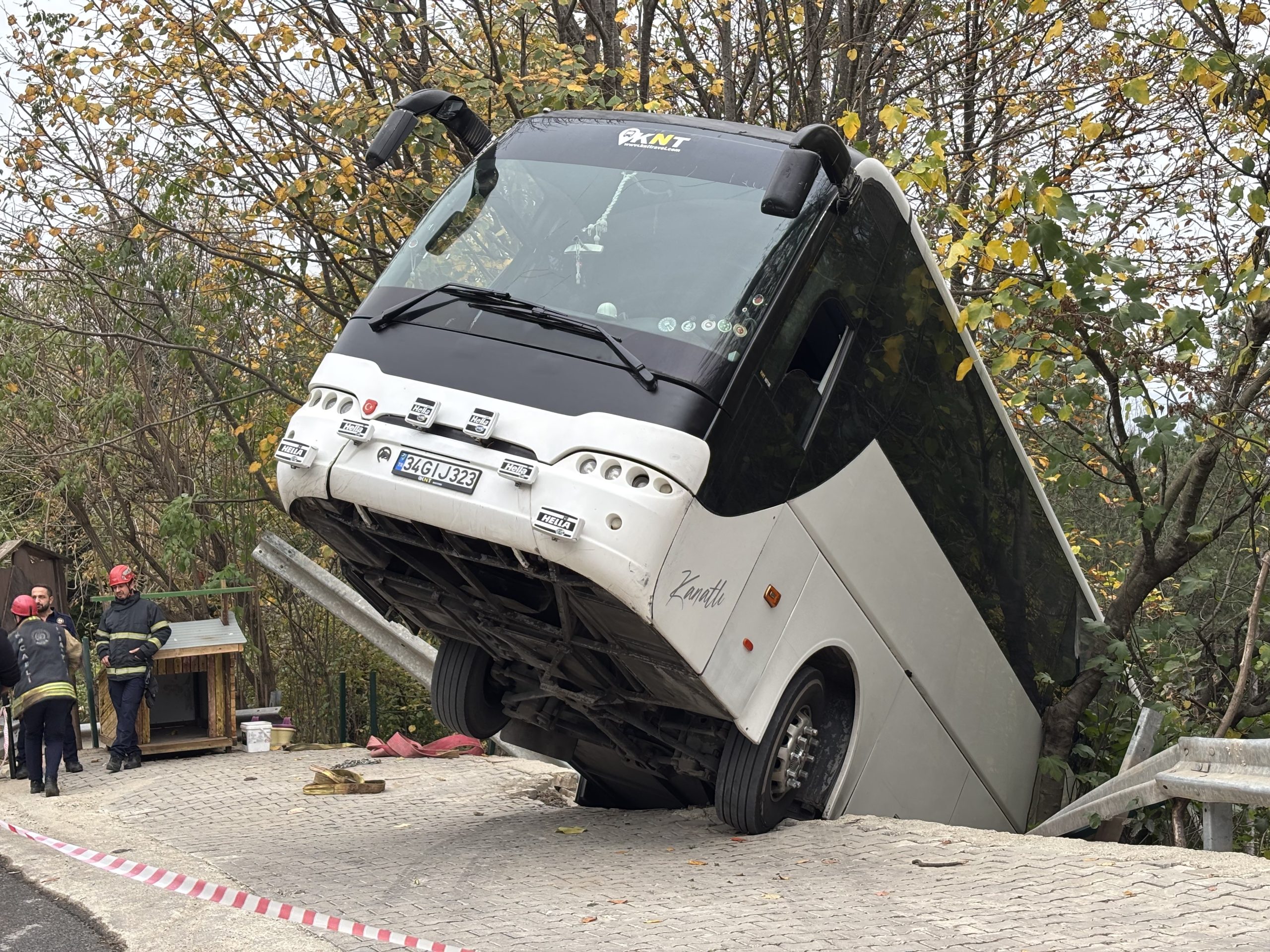 Park halindeki 34 GIJ 323 plakalı tır otobüsü park halindeyken hareket etti. Rampa aşağı ilerleyen otobüs, bariyeri aşıp şarampole düştü. Otobüsün arka tekerlekleri toprak zemine değerken, ön kısmı ise havada kaldı. Kazada yaralanan olmazken, ihbarla bölgeye jandarma ve itfaiye ekipleri yönlendirildi.