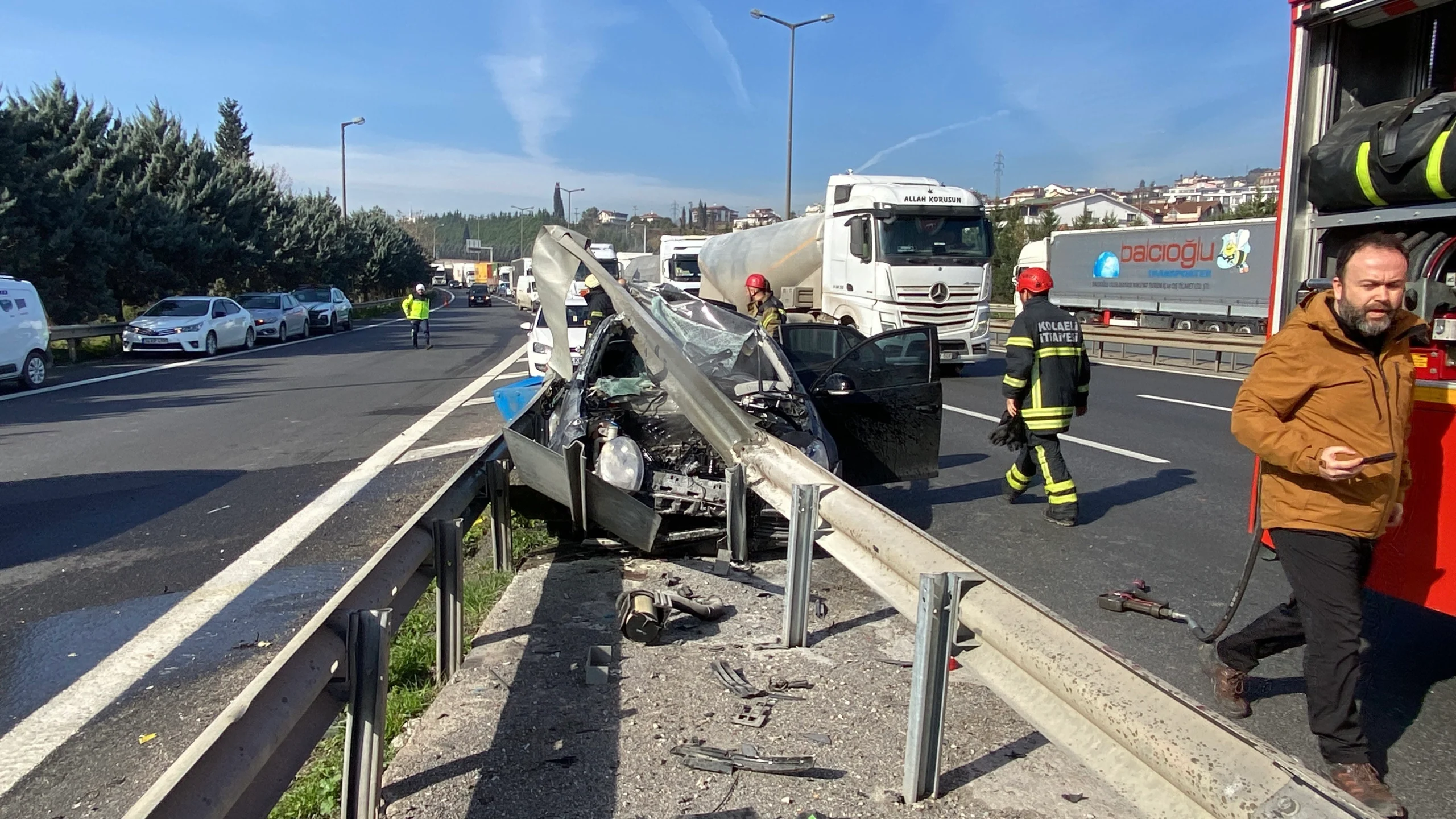 Olay, 12.30 sıralarında Kocaeli İzmit Batı gişelerinde meydana geldi. İ.V.A. kontrolündeki 01 DM 700 plakalı Volkswagen otomobil yol ayrımında kontrolden çıkıp bariyerlere girdi. Hurdaya dönen aracın sürücüsü ile yanındaki M.A., D.A. ile E.A. yaralandı.