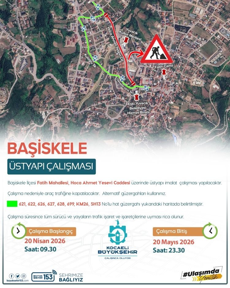 Kocaeli Büyükşehir Belediyesi, Başiskele ilçesinde ulaşım kalitesini artırmaya yönelik planlanan üstyapı çalışmaları kapsamında önemli bir trafik düzenlemesine gidileceğini açıkladı. Bu çerçevede Hoca Ahmet Yesevi Caddesi, belirli bir süre araç trafiğine kapatılacak.