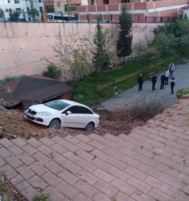 Kocaeli’nin Çayırova ilçesinde bir okulun bitişiğinde bulunan istinat duvarı, toprak kayması sonucu büyük bir gürültüyle çöktü. Duvarla birlikte park halindeki bir otomobilin de metrelerce aşağı sürüklendiği olayda, saniyelerle facianın eşiğinden dönüldü.