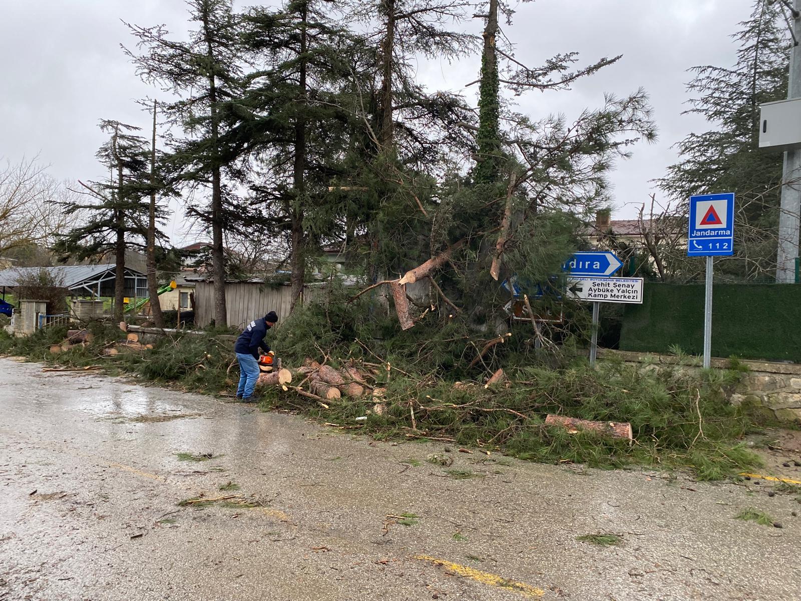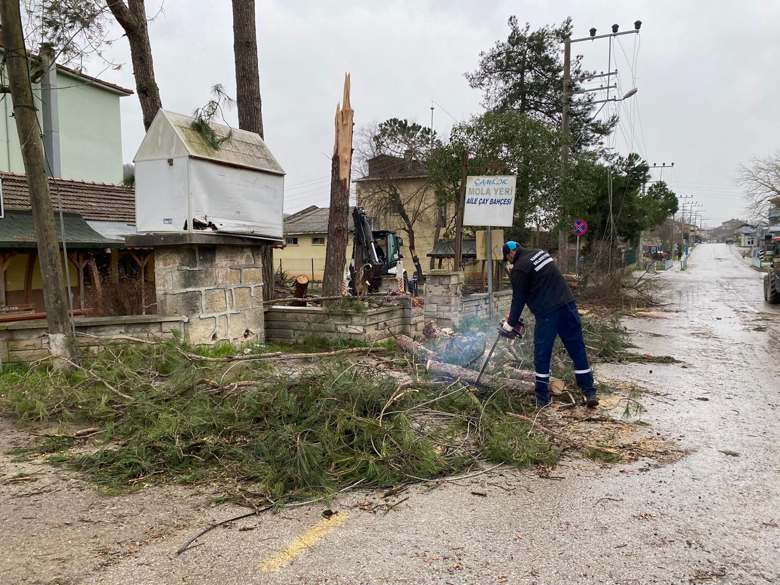 Kocaeli’nin Kandıra ilçesinde etkili olan şiddetli fırtına ve olumsuz hava koşulları ilçede hayatı olumsuz etkilerken, belediye ekipleri yaşanan hasar ve ulaşım aksamalarına karşı sahada çalışma başlattı.