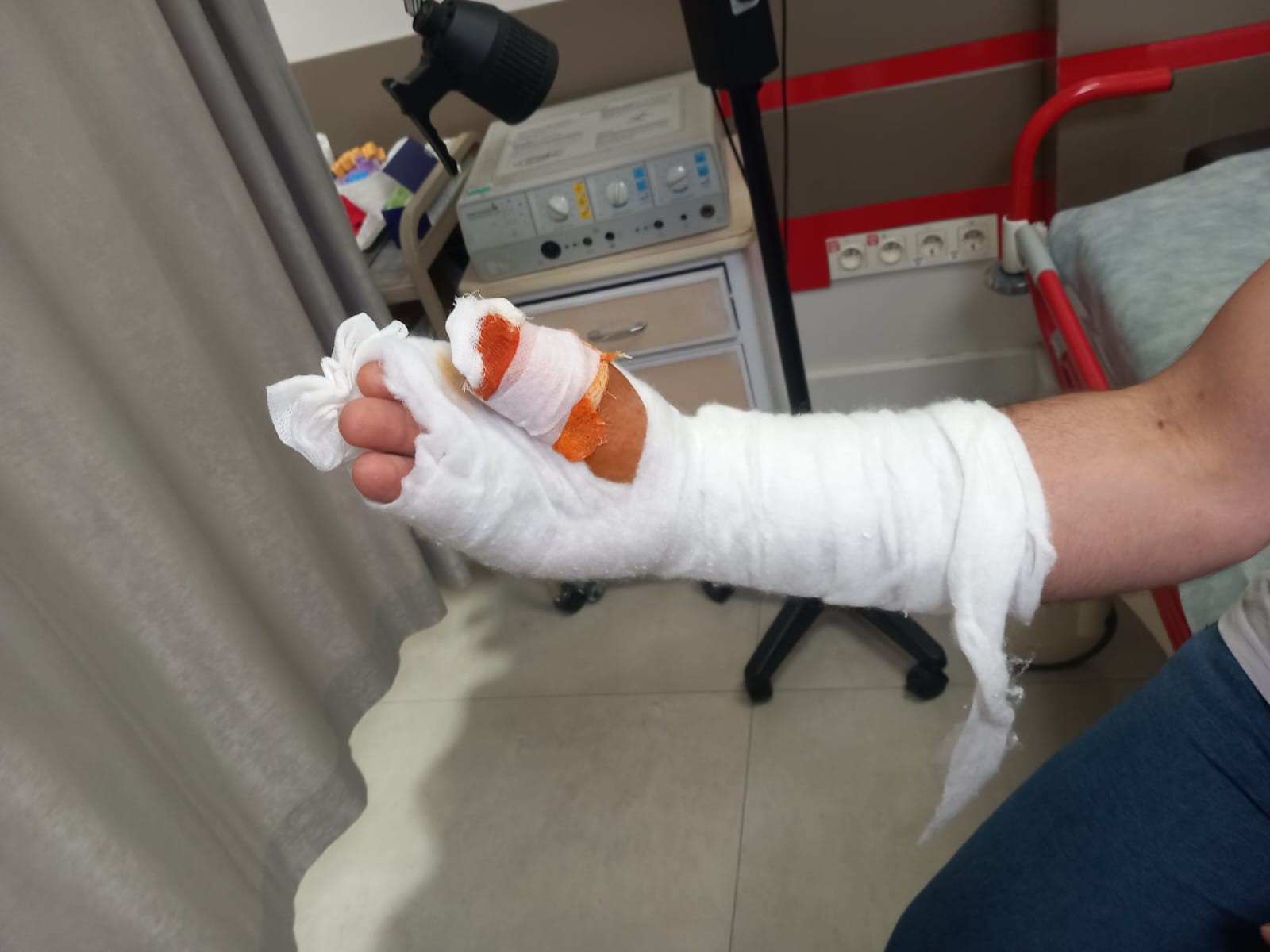 Güleryüz, bayramın ardından başka bir özel hastaneye başvurduğunu anlatarak, “Buradaki hastanede acil ameliyata alınmam gerektiği söylendi. Burada da MR veya herhangi tetkik yapılmadan ameliyata alındım. Ondan sonra 2 kez daha ameliyat geçirdim. Bu süreçte doktorlar parmağımın kurtarılamayacağını söyledi. Parmağımın tendon damarı ve sinir damarı tutmadı. Parmağım çürümeye başladı. Bize yaptıkları teklif şu oldu; ‘Parmağı bükeriz, katlayıp geriye bırakırız’ dediler. Biz de kabul etmedik. ‘Çürümüş parmağı içeriye nasıl katlayabilirsiniz?’ dedik. Onlar da yapacak başka çarelerinin olmadığını söylediler. Biz de başka hastanelerden randevu aldık ve başka hastanelere gittik. Parmağın ampute edilmesi gerektiği söylendi. Parmağım ampute edildi. Büyük ihtimalle ikinci gittiğim hastane sebebiyle parmağımı kaybettim çünkü ameliyatlardan sonra herhangi röntgen ya da MR çekimi yapılmadı. Bunu doktora söylediğimiz halde doktor bizi dinlemedi. Bize ‘iyiye gidiyor’ dedi” ifadelerini kullandı.