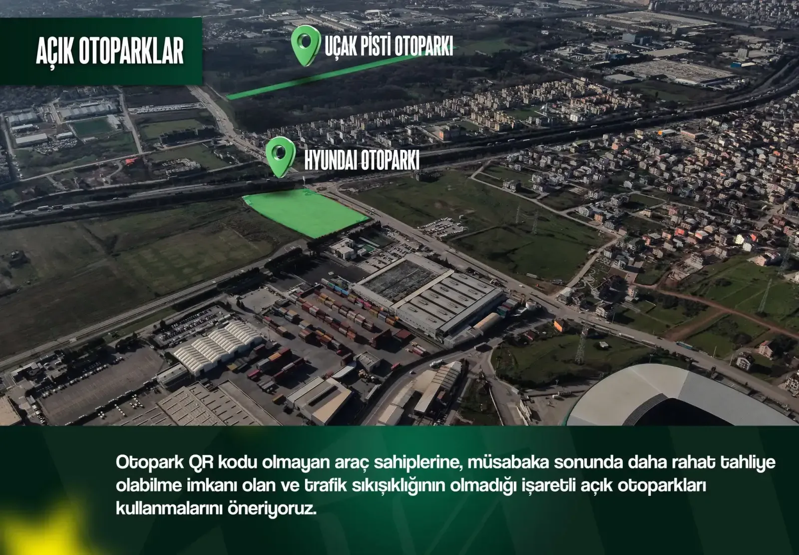 Otopark QR kodu bulunmayan taraftarlar için de alternatifler sunuldu. Trafik yoğunluğuna takılmak istemeyen araç sahiplerinin, maç çıkışında daha hızlı tahliye imkânı sağlayan ve trafikten arındırılmış işaretli açık otoparkları tercih etmeleri önemle rica edildi.
