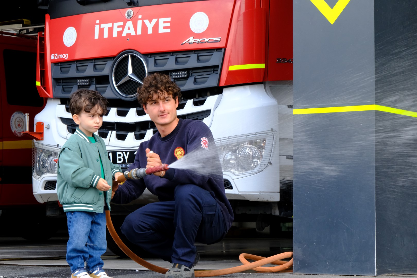 Ziyaret boyunca itfaiye araçlarına binen öğrencilerin mutlulukları gözlerinden okundu. Çocuklar ayrıca itfaiyeci abileriyle birlikte suyla müdahale fırsatı buldu.