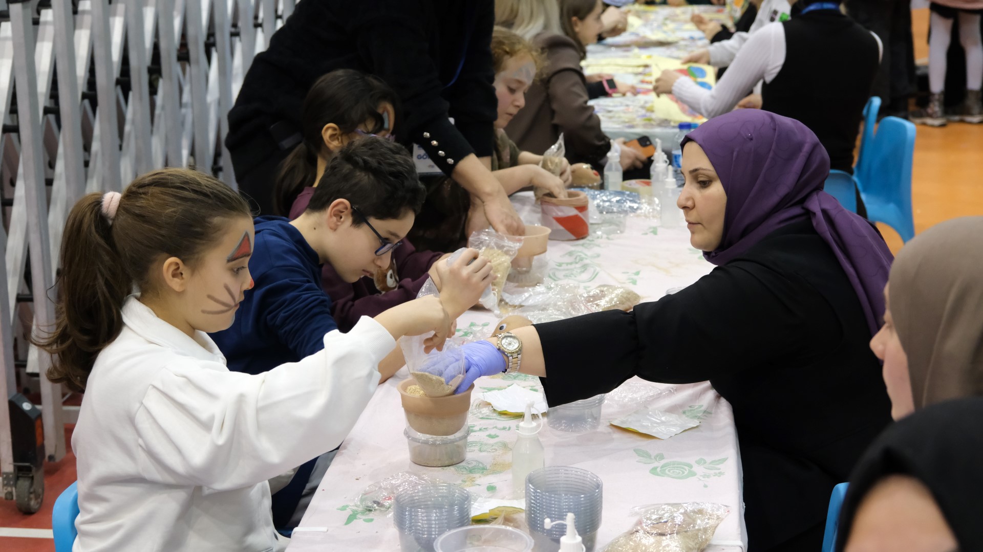 Gün boyunca devam eden etkinliklerde çocuklar karne harçlık kesesi ve bez çantalarını kendi hayal güçlerini kullanarak boyadı. Renkli görüntülere sahne olan atölyelerde kum boyama, yüz boyama ve çim adam yapımı gibi el becerilerini geliştiren etkinlikler gerçekleştirildi.