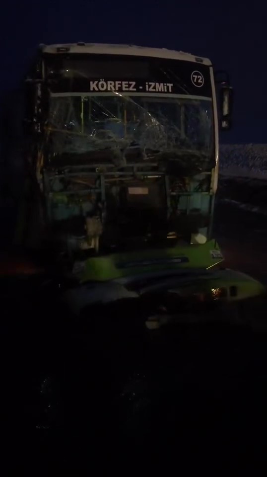 Kaza, sabah saatlerinde Körfez ilçesi İlimtepe yolunda meydana geldi. Yoğun kar yağışı ve buzlanma sebebiyle özel halk otobüsü ile otomobil çarpıştı. Çarpışmanın şiddetiyle otobüsün ön camı adeta tuzla buz oldu. Otobüs içinde bulunan yolcular büyük korku yaşarken, bazıları ise yaralandı.