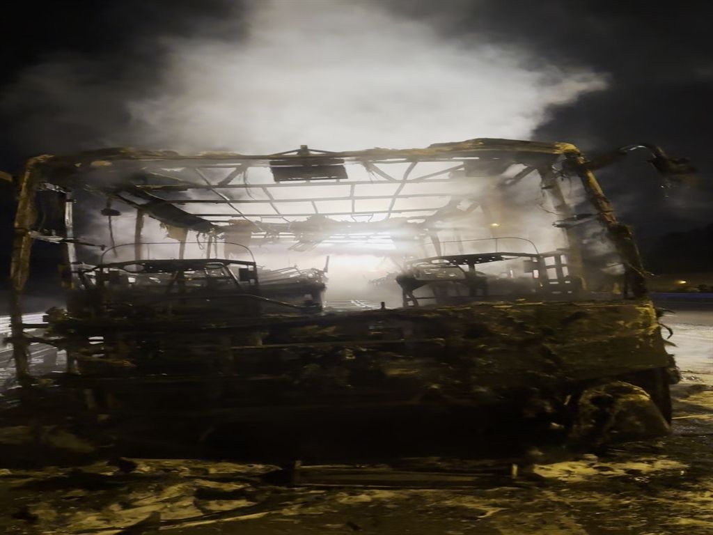 Durumu fark eden sürücü, aracı emniyet şeridine çekerek durdurdu. Kısa sürede büyüyen alevler otobüsün tamamını sardı.